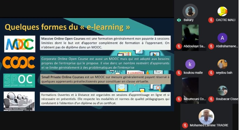 La session était animée par M. Bakary KOUYATE, Président du Chapitre Malien de l'Internet Society (ISOC Mali). ISOC une association membre de la coordination. Le thème a porté sur l'Efficacité du e. learning en temps de pandémie: Comment le e. learning améliore l'éducation?