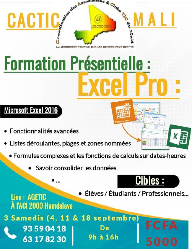 Dans la poursuite de ces missions, qui est la vulgarisation et l'appropriation des TICs par la jeunesse, la CACTIC organise une formation sur tableur (Excel avancé).